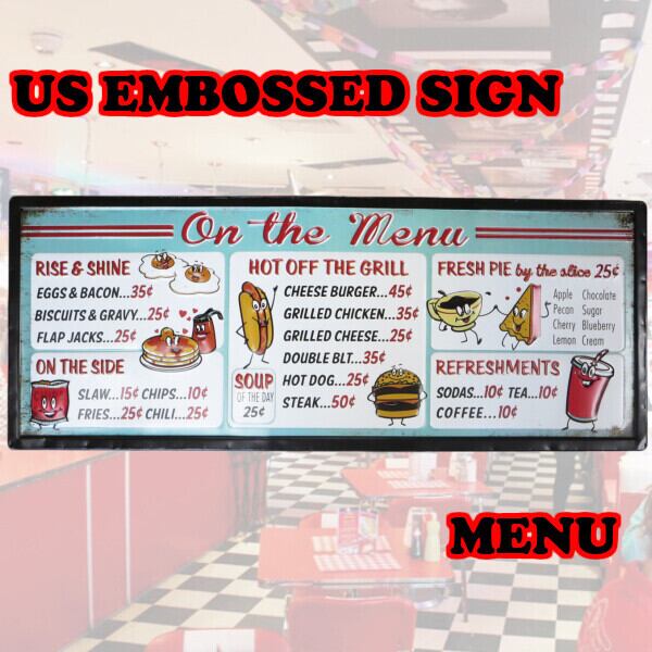 アメリカンダイナーデザインのエンボスメタルサインです!